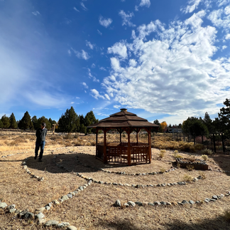 When I found out about this labyrinth, what struck me first was the structure at the center. It's on a private property on a rural residence in Bend, Oregon. When I called the homeowner to ask for permission, he explained that he had a friend who built gazebos, and he thought it would be interesting to have one in the middle of his labyrinth. So he did.