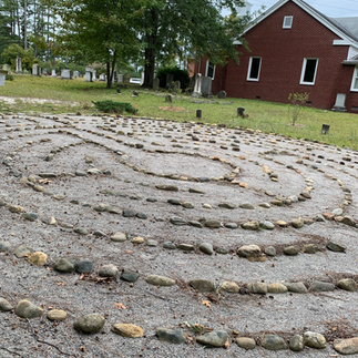 On the northeastern outskirts of Columbia, SC, I found the Columbia Friends Meeting House. I've come across a few labyrinths at Friends Meeting locations, and they are generally well-kept and enjoyable to find and walk. This one was behind the congregation's cemetery so I had to walk around that to reach the path. It's set far enough back from the road and the building that I could walk it without disturbing anyone, especially if they were visiting a loved one's grave.
