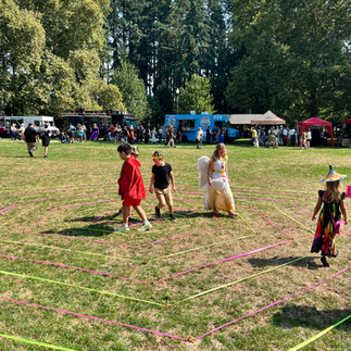 I hadn't planned on attending the Celtic Fantasy Faire happening recently in Hillsboro, OR, but when I heard there would be a pop-up labyrinth, I squeezed in a stop. I arrived just as it was being constructed and was able to easily walk it along with many others, mostly a younger crowd though. The fair at Shute Park was refreshing too - plenty of costumes, sights, sounds and more - all with the Celtic or Renaissance theme. I had heard that 400 people walked last year's festival labyrinth and I imagine that at least as many checked this one out.