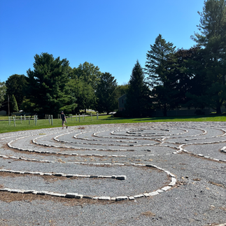 I had hoped to find a labyrinth in Lancaster, PA, that may have had some connection also to the area's rich, interesting Amish culture. Alas, I was only there for a short time during a recent trip so I was only able to visit one. It was a good one though, the labyrinth at the Spiritual Center at St. Thomas Episcopal Church. It's a few miles north of the city of Lancaster itself, but well-marked and easy to find and access. It came into being about 10 years ago, and was, like many of these, an Eagle Scout project. I appreciated the crushed stones of the walkways, which made for a more comfortable walk. This was one of the larger labyrinths I've seen so I had plenty of time for reflection and meditation on the way to the center and then back out.