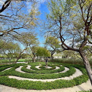 Visitors to Southern California's Palm Springs area often make a quick trip to Sunnylands. After all, it's a gorgeous complex of gardens and trees, with an art center, a historic house, a cafe and other features. And it's free and easy to get around, and the tree-lined walkways provide enough shade on hot days, while on cooler ones, there's plenty of lawn space to laze on. I wasn't familiar with Sunnylands, but spent the time to tour the center and learn about its history. For decades, U.S. presidents have met their foreign counterparts there for high-level meetings, and it has become a place for serious political events over the years. They often involve meals, and there's an exhibit around the intersection of fancy dining and big-leader political events, hence 'gastrodiplomacy,' a term new to me. The labyrinth itself is interesting, with concrete paths surrounded by shrubbery. It's set back from the main path but worth walking around on a visit to the center.