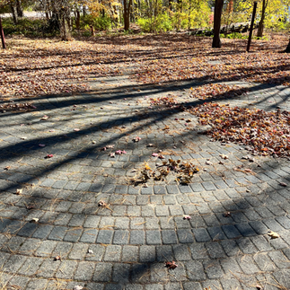 There's no better time to be in rural New England than mid-October, and I found myself by Lake Massapoag, which is "great pond" in the Algonquin language. By the lake is a cobblestone traditional labyrinth. On this day, leaves and branches obscured most of the pattern, but after some cleanup work, it was able to be mainly walked.
