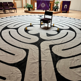I heard about the labyrinths at St. Andrew Lutheran Church in Vancouver as part of a COVID Day of Remembrance. The church had scheduled a special afternoon service around that theme and then invited people to come and walk their indoor and outdoor labyrinths. I had not been to that church so I was eager to go. The church members who I met could not have been more welcoming and kinder. I was able to quietly walk a portable labyrinth set up in the large hall, and then move outdoors to a smaller one just by the parking lot. According to a plaque, that was one came about recently, in 2023. I can't recall any other area church having two labyrinths so this was a nice treat.